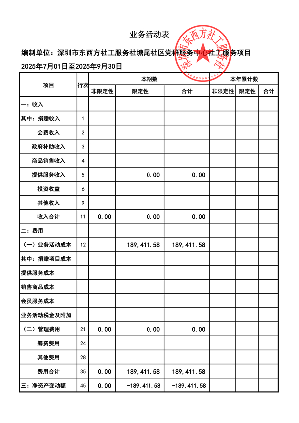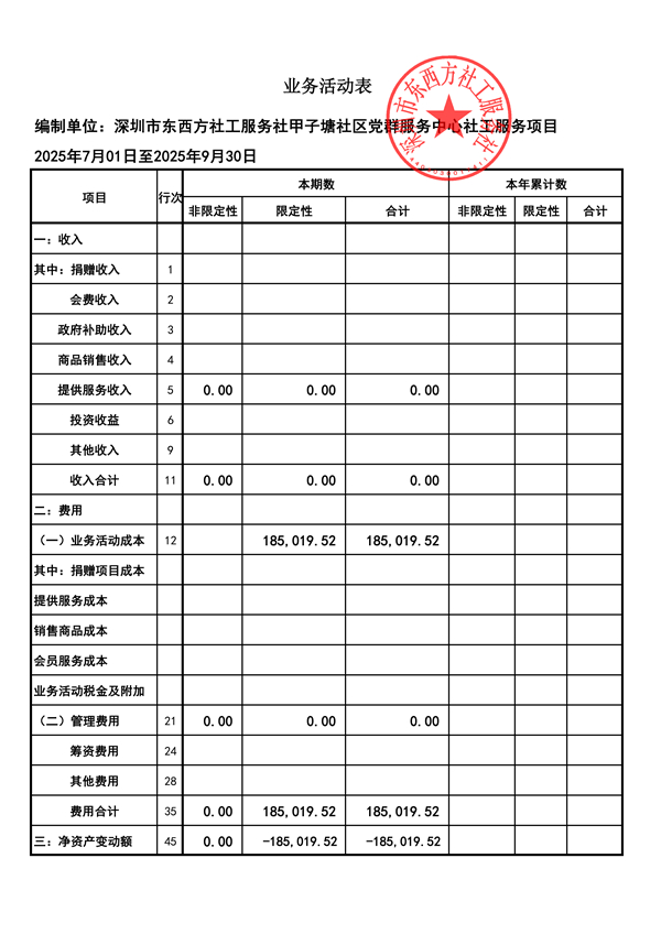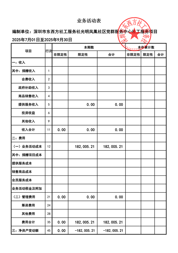 深圳市光明区凤凰街道社区党群服务中心2025年第三季度财务公示