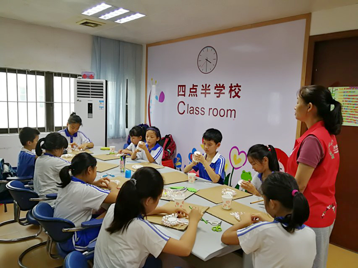 2019年6月21日下午,长岭社区党委、社区居委会支持下的社区四点半学校迎来了本学期最后一次兴趣手工活动——“动感海洋”创意绘画活动。 本次活动中,社工带领着四点半学校的学员们用环保纸盘、小型磁铁等材料作出了一幅幅多姿多彩的海洋图画。首先...