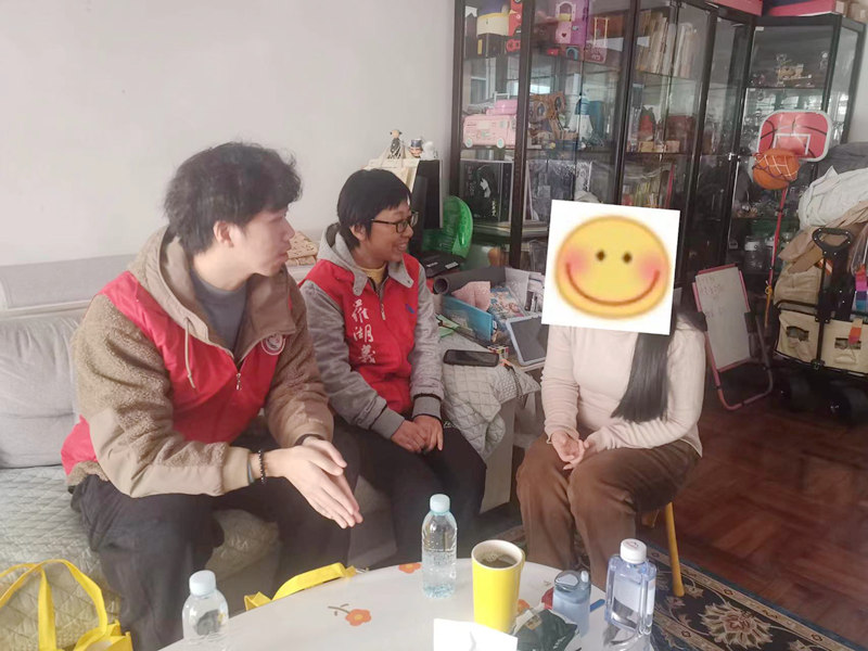 探访过程中,社工与志愿者们陪伴服务对象聊家常,询问他们的身体近况,了解他们的生活情况,并叮嘱他们在冷空气来临时要注意添衣保暖。也有老人家趁着天气晴好与邻里一起在附近遛弯、聊天,营造了和谐友善的社区氛围。