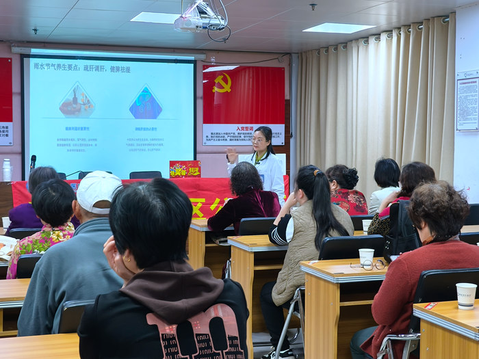 2025 年 2 月 18 日,雨水节气当天,东西方驻凤凰社区党群服务中心社工团队携手常安润生门诊,在凤凰社区新时代文明实践站开展“雨水节气养肝知识讲座”活动。本次活动吸引了19名社区长者热情参与,大家一同探索雨水时节的养肝奥秘。