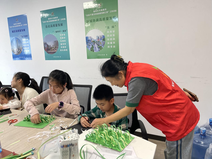 文化讲解后,活动进入春日立体手工制作环节。工作人员提前准备了彩纸、剪刀等材料,参与者以家庭或小组为单位,创作富有春意的立体手工作品。有的家庭用卡纸剪出嫩绿的柳枝与燕子,还原“清明插柳”的传统场景;有的孩子用彩纸折叠出缤纷的风筝,寓意“除灾纳福”。活动现场欢声笑语,一件件充满巧思的作品,既是对传统文化的致敬,也是对春日生机的礼赞。