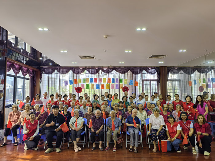 本次活动以文艺汇演为核心,巧妙融合建党节主题,通过观看以歌颂党为主题的合唱、小品等表演,以及生日会互动、党建知识问答、品尝生日蛋糕等环节,为社区长者们带来了一场难忘的庆祝盛宴,活动当天,社区高龄长者们个个都精神矍铄,手持小国旗,早早来到活动现场。随着主持人热情洋溢的开场白,活动正式拉开帷幕。