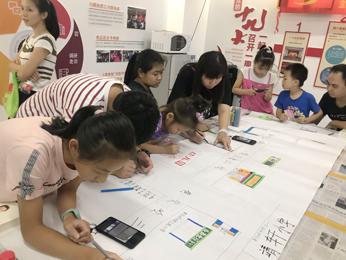 活动以“社区寻宝”形式展开,首先分成了三队,参与者们拿着交通卡,在社工指定的社区范围内进行寻宝,找到社区内独特的地理位置。每一队分工都很明确,有的负责记路,有的负责拍照,各司其职,一路上大家热烈的讨论着。